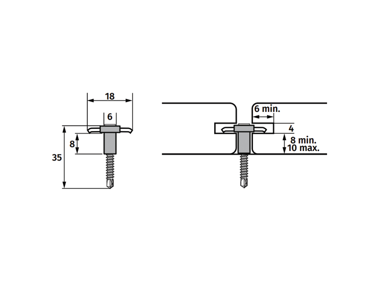 • Gereduceerde kop met een diameter van 6 mm