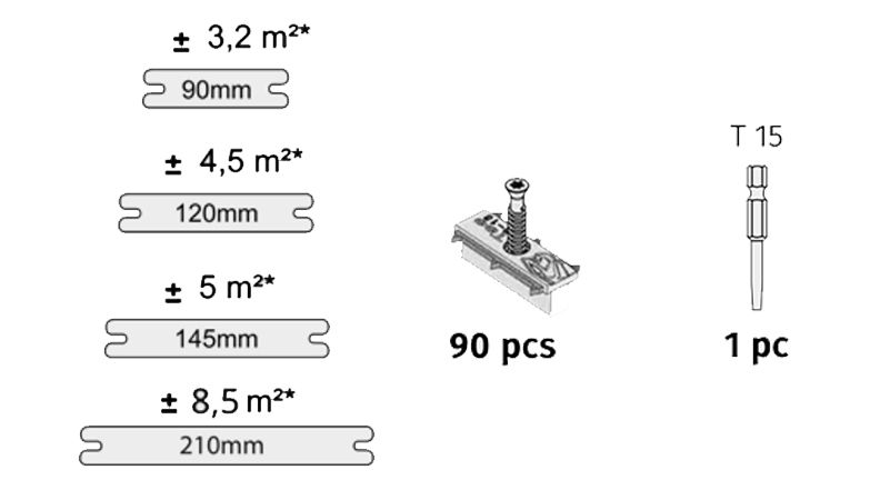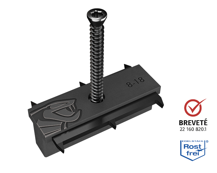 De Cobra® Hybrid 8-18 clip is een bimateriaalbevestiging in matzwart om lichtreflecties te vermijden. Dankzij de 304 roestvrijstalen haken houdt hij je terrasplanken stevig tegen de draagbalk. Het is snel en eenvoudig te installeren. Dankzij de polypropyleen basis zijn er geen afstandhouders nodig voor de planken en de Cobra® clip vermindert de tijd die nodig is om je terras te bouwen met minstens 30% in vergelijking met conventionele schroefinstallatie. Er is slechts één schroef per clip nodig en dankzij de zelfborende kop is een eenvoudig bitje (meegeleverd met de clips en schroeven) alles wat je nodig hebt om de Cobra® clip op de draagbalk te installeren zonder voor te boren.
