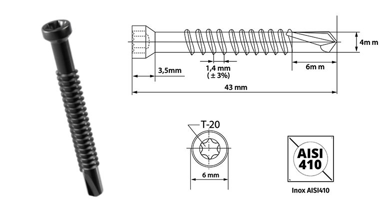 • Schroef 4,8 x 43 mm maat L in roestvrij staal AISI410