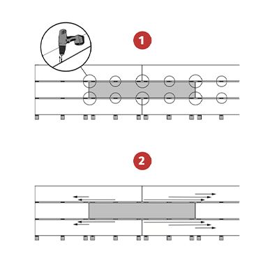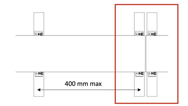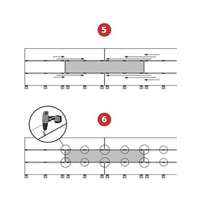 Om twee planken met elkaar te verbinden, is het essentieel om de draagbalk te verdubbelen, zodat aan elk uiteinde van de plank twee afzonderlijke clips kunnen worden aangebracht.