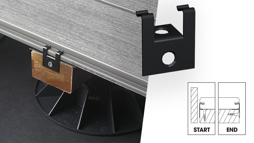 De Start/End clip kan worden gebruikt om zichtbare schroefsporen op het terras te vermijden.