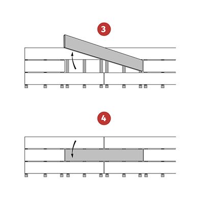 STAP 4. Herhaal deze handeling tot de laatste plank en eindig met de laatste start/eindclip. |