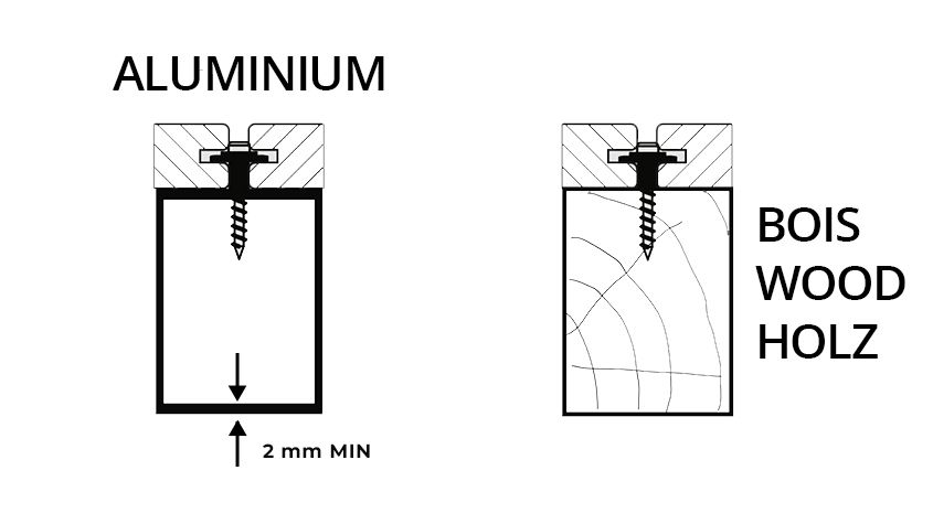 De wanddikte van de aluminium draagbalk moet minstens 2 mm zijn.