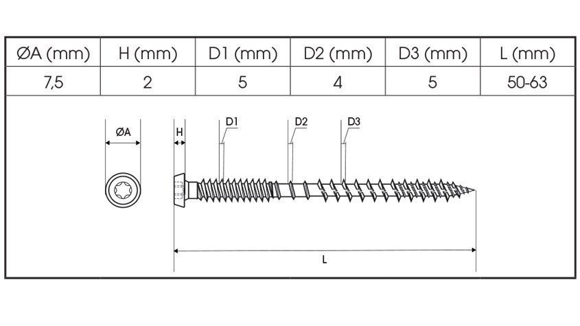 Deze schroeven speciaal ontworpen voor composiet planken hebben een dubbele schroefdraad met een kleine subtiele schroefkop om het boren te vereenvoudigen materiaalophoping te voorkomen.