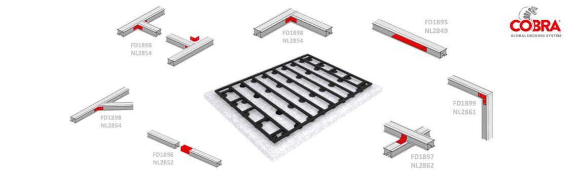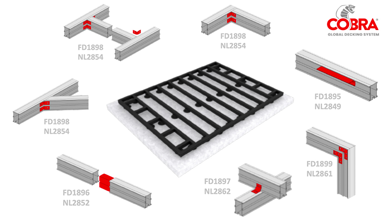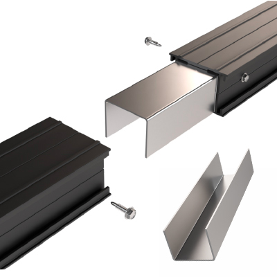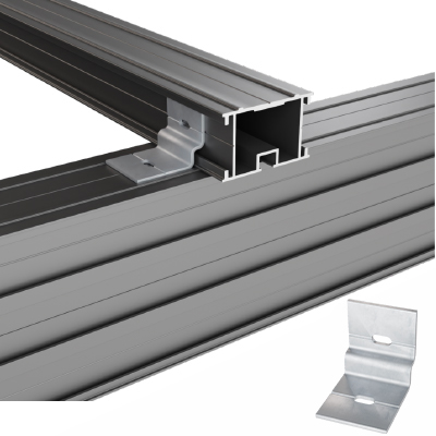 • De deelbare dwarsbalken passen over de draagbalken en schuiven op hun plaats voor een eenvoudige, nauwsluitende installatie.