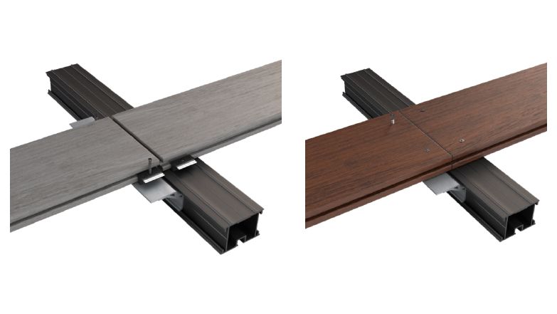 • Dit systeem voor het verbinden van terrasplanken maakt een dubbele balklaag overbodig.