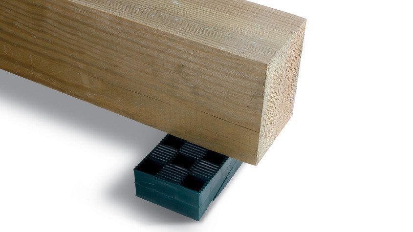 Het gebruikte rubber is afkomstig van gerecycleerde materialen. Ze vormen een eenvoudige en economische oplossing om de risico's op verrotting of aantasting van de houten structuur van uw dek te beperken.