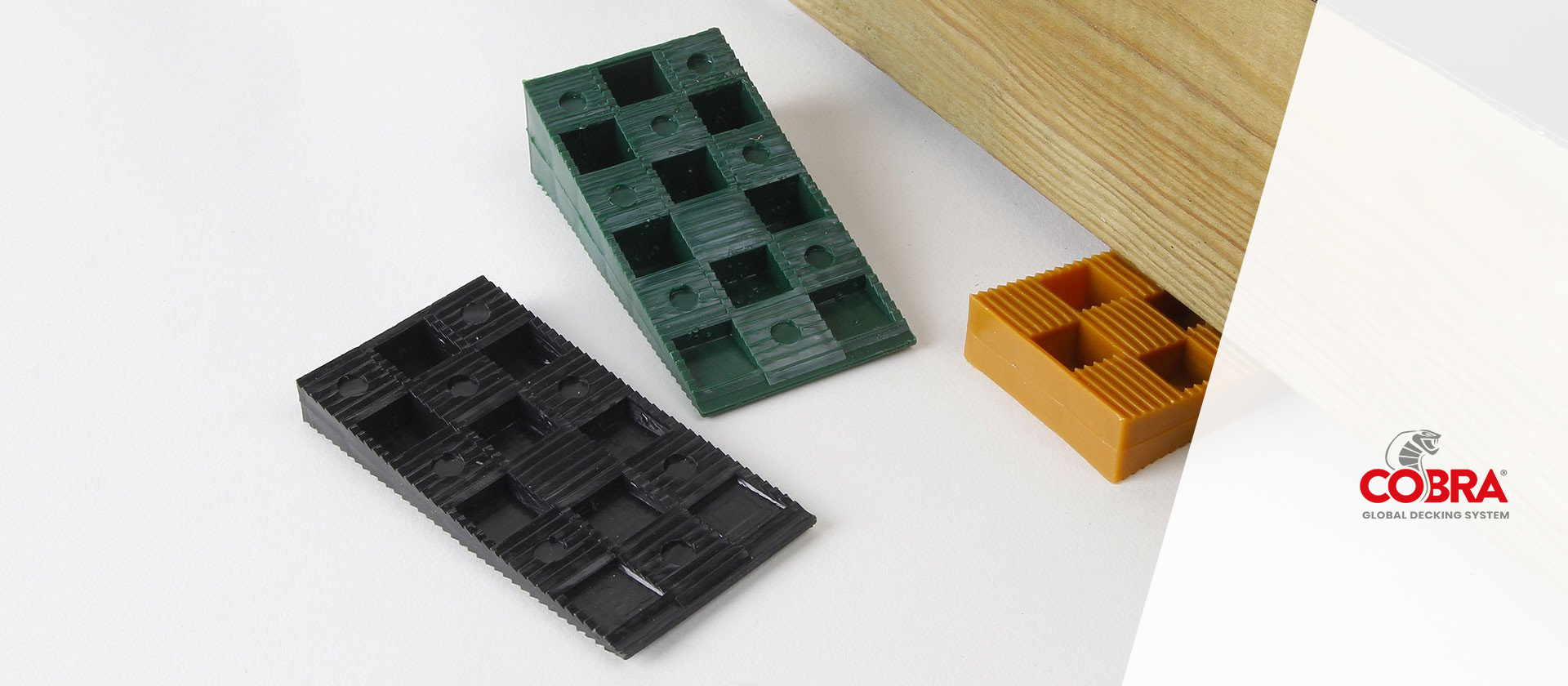 De terraswiggen zijn nodig om het Bouwbesluit te respecteren. Deze wiggen moeten worden gebruikt bij het plaatsen van een houten dek op balken op een betonnen plaat. Hun rol is het afvoeren van regenwater onder de balken om zo de ventilatie te waarborgen en waterstagnatie en dus houtrot te voorkomen.