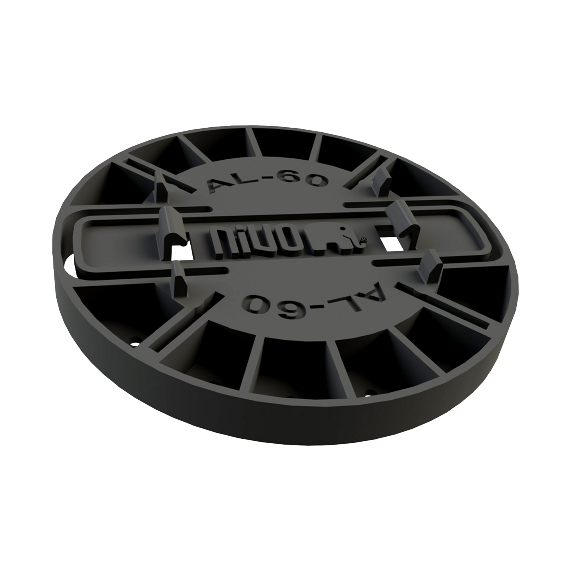 Adapter waarmee aluminium balken van 60 mm breed kunnen worden vastgeklikt op verstelbare NIVO tegeldragers. Past op de 4 noppen van de tegeldrager kop.
